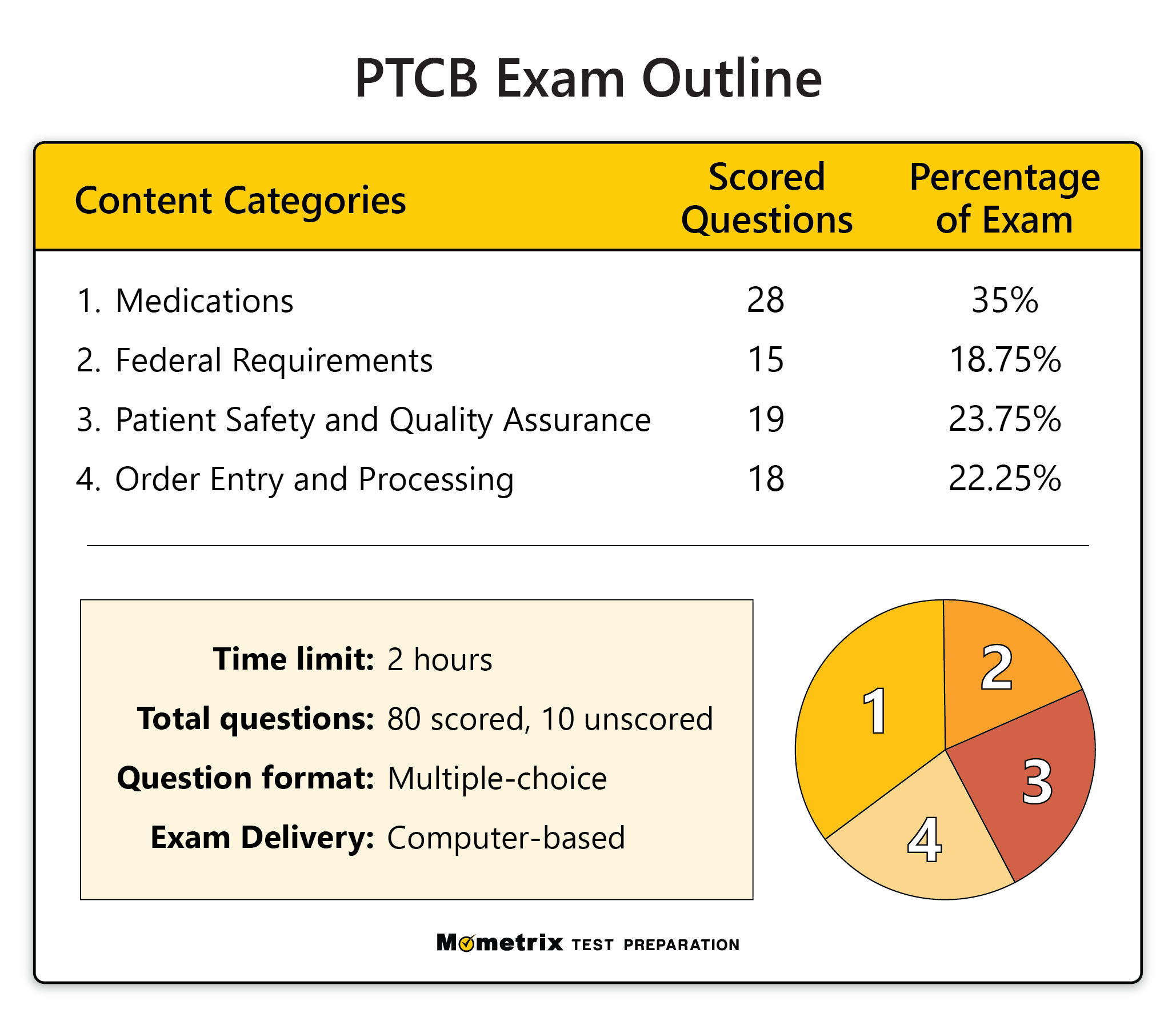 Your final score will not be influenced by these unscored questions but will be based on your answer selections for the remaining 80 scored exam questions. To get a feel for how the examination will be set up, be sure to test yourself with a PTCB practice test before your test date.