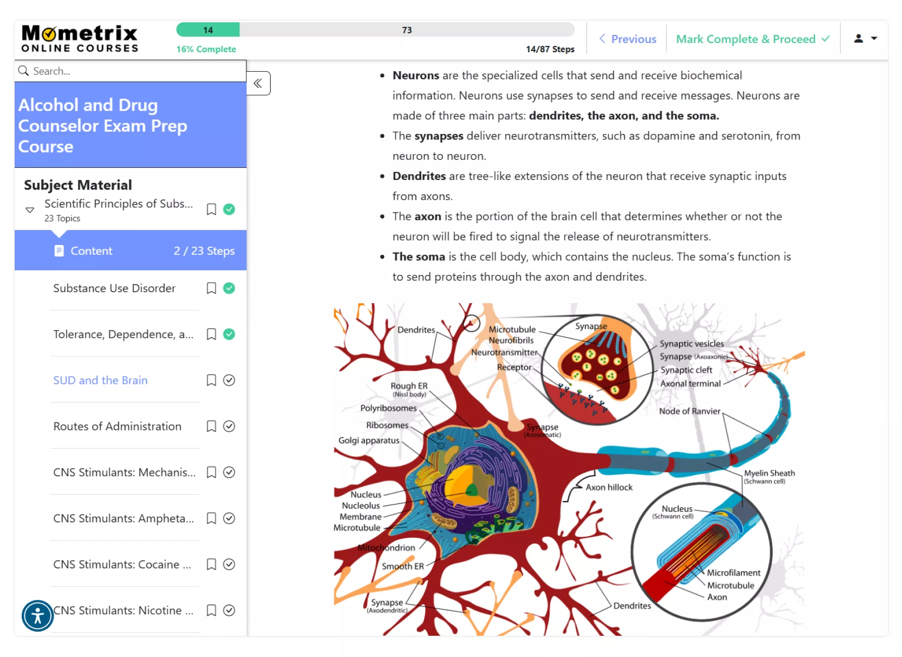 - Track your progress by marking lessons complete and reviewing your practice question statistics