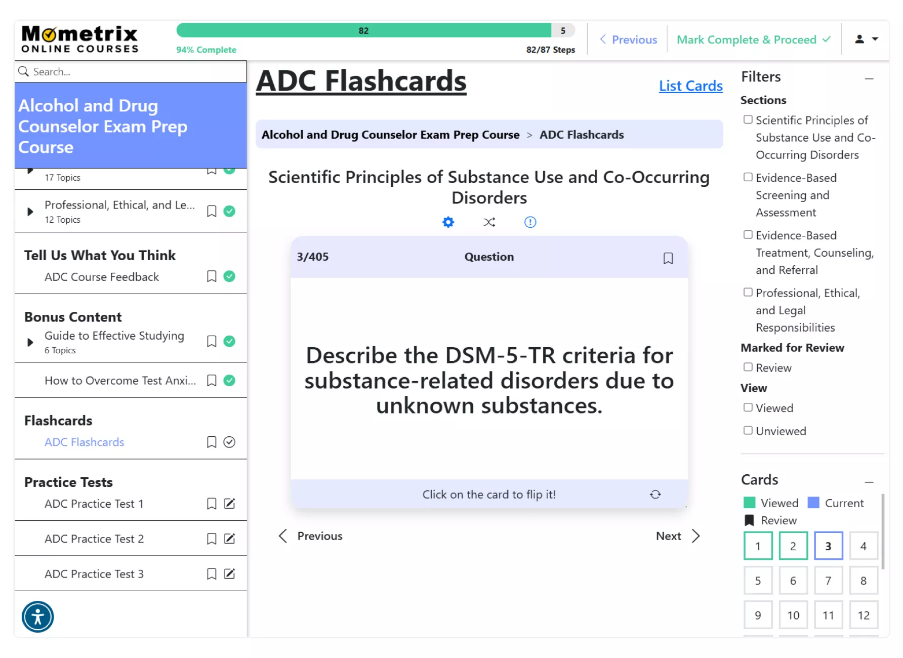 We know practice problems are the key to exam mastery. That’s why our comprehensive course includes over 400 flashcards. These flashcards are packed with key concepts, making studying on-the-go easy.