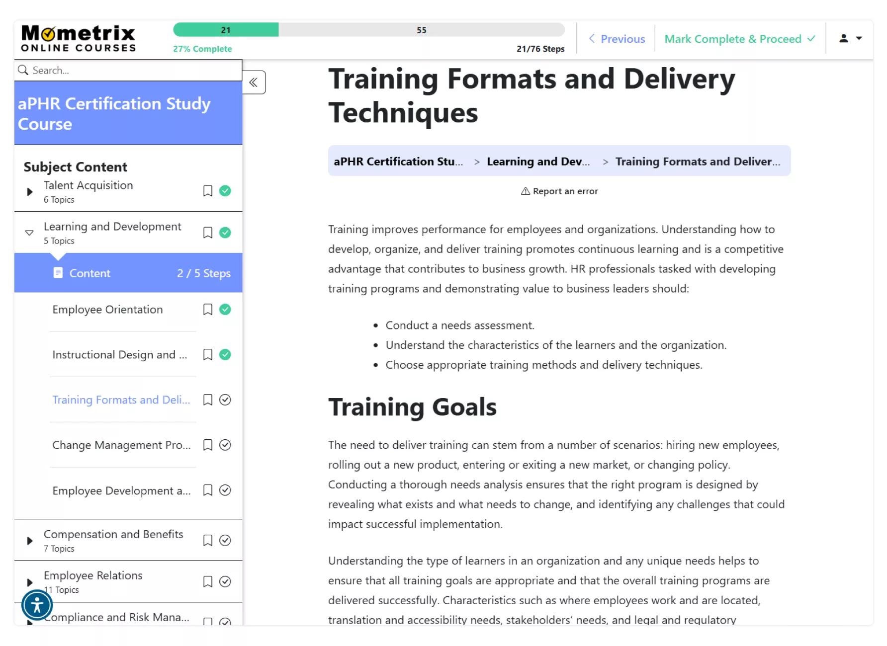 We understand that the compensation and benefits section, in particular, can be a stumbling block. That’s why our aPHR prep course includes dedicated subjects to brush up on essential points like pay adjustments, market analysis, and benefits and insurance programs. We break down confusing subjects, making them easy to understand and ensuring you feel confident tackling any compensation and benefits questions on the exam.