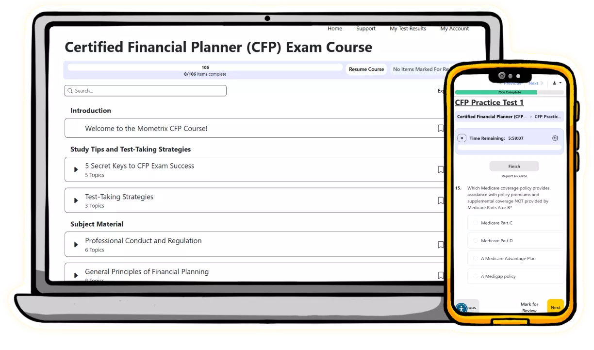 - Practice with 2 full-length Certified Financial Planner practice tests that mimic the actual questions you’ll find on the exam