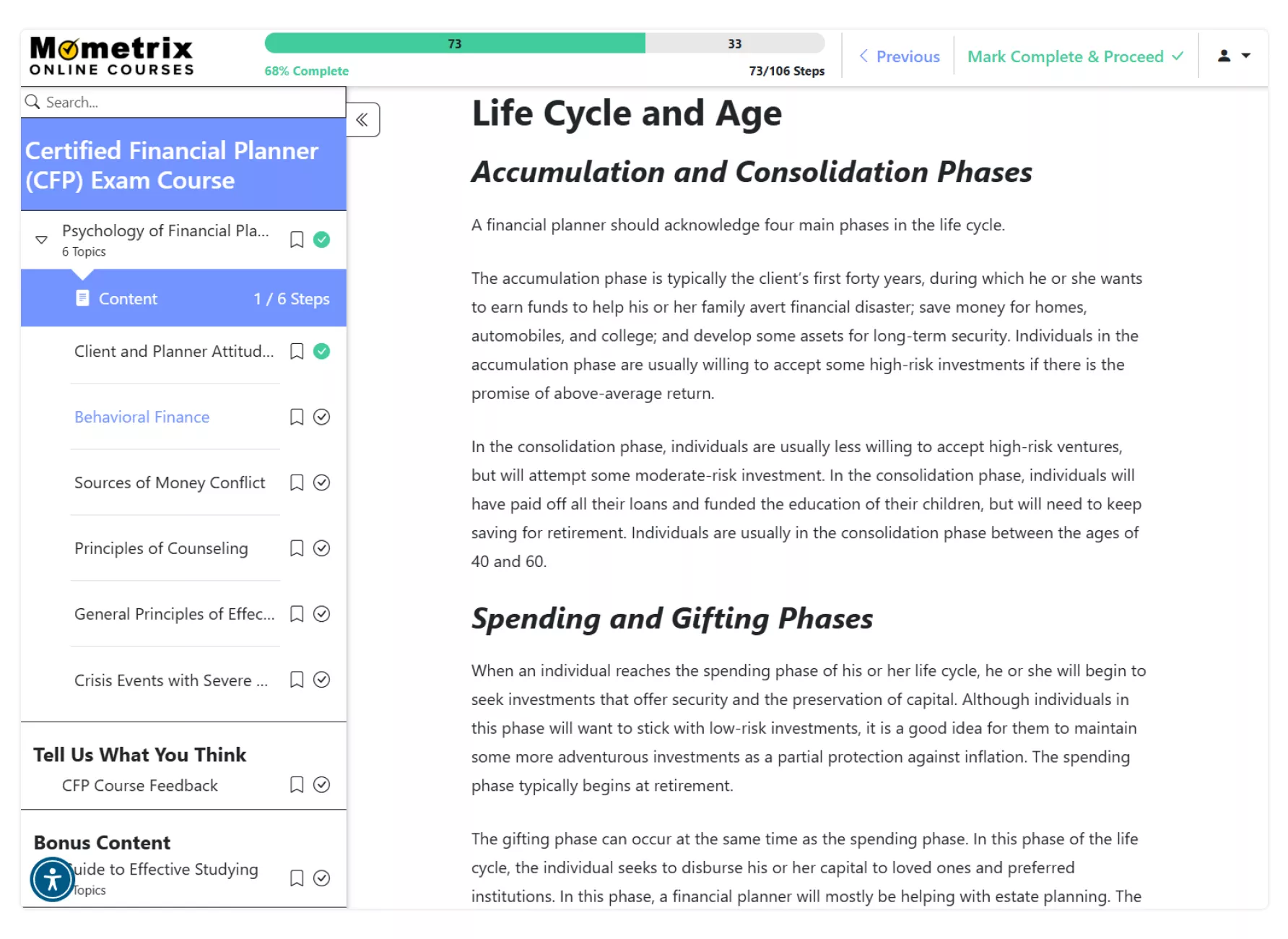 Our course includes the secret keys to the CFP exam that we’ve learned through years of research. We’ll tell you how to get questions right when you have no idea what the answer is, the clues hidden in questions to help you guess correctly, and the best way to maximize your studying while minimizing your effort.