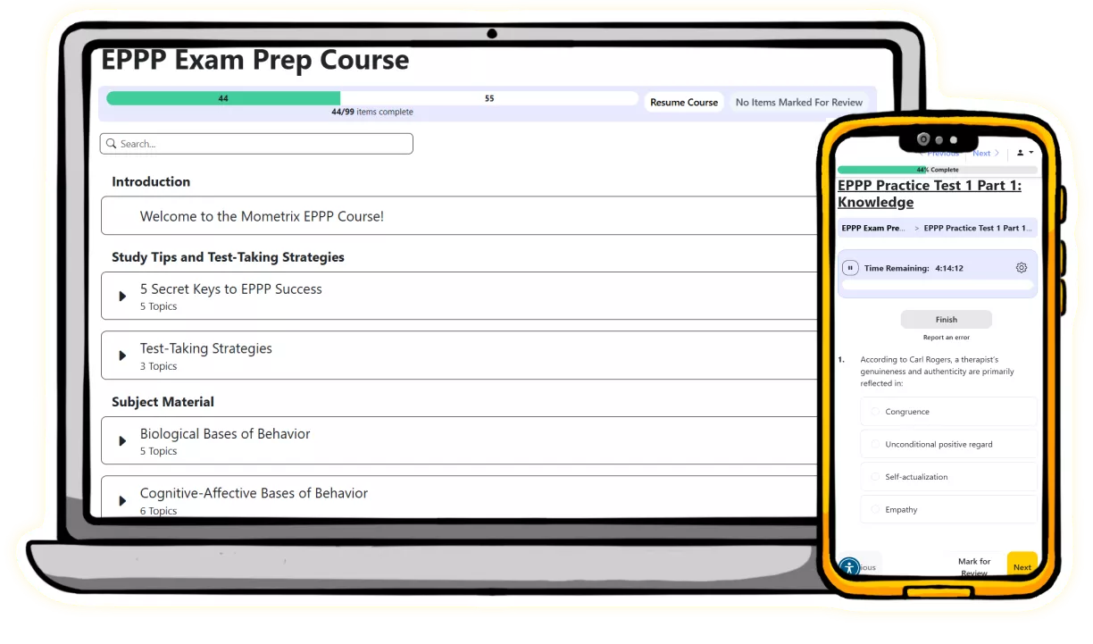 - Practice with 1 full-length EPPP practice test that mimics the actual questions you’ll find on the exam