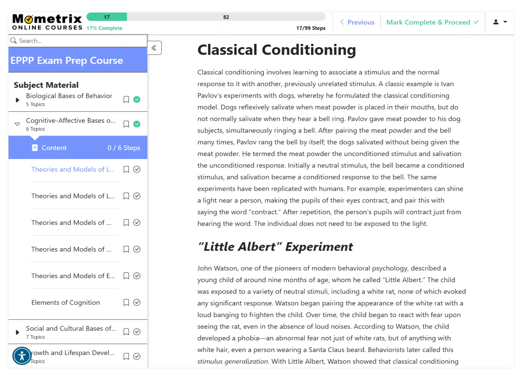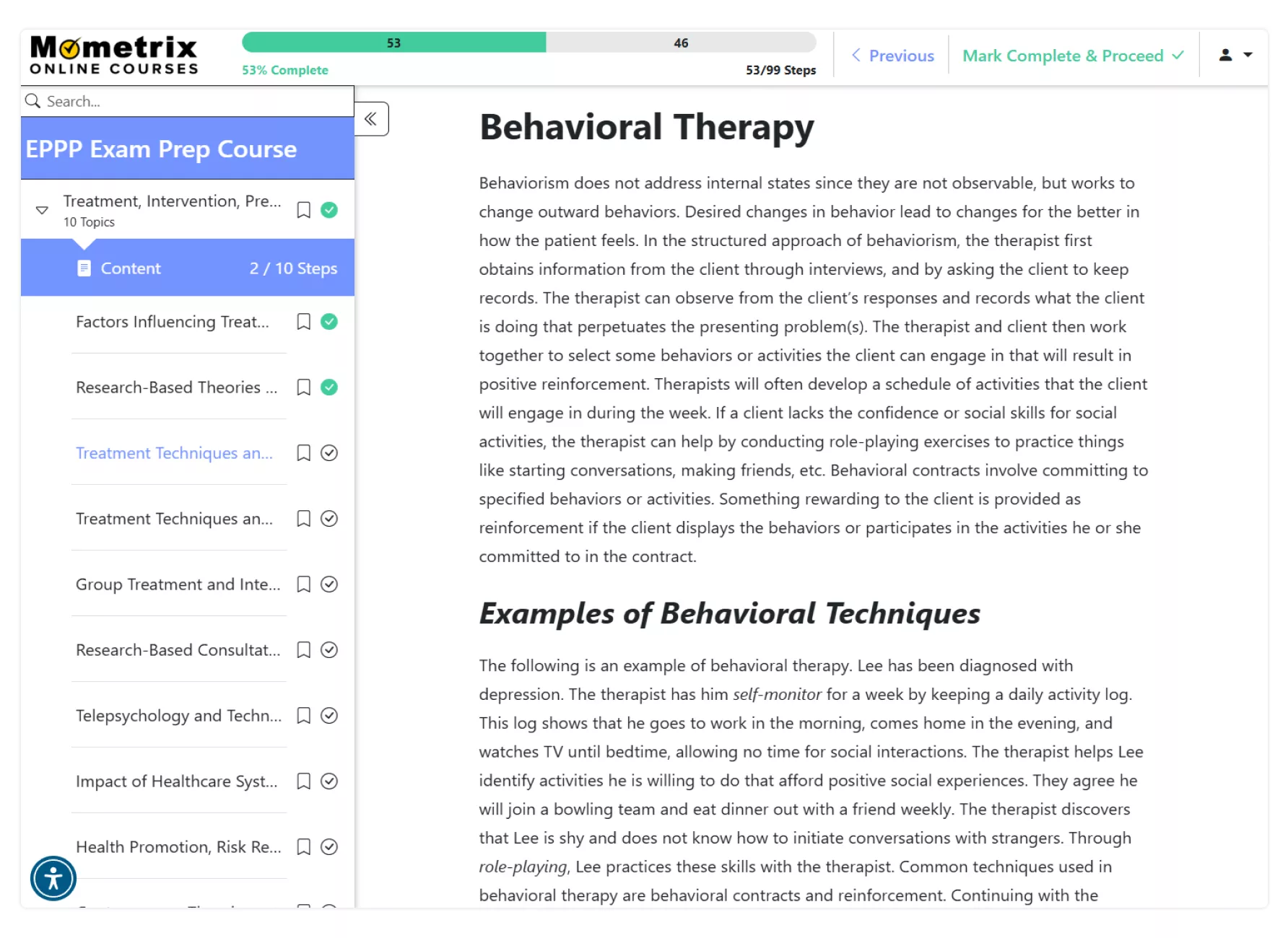 We understand that situational questions can be a stumbling block. That’s why our EPPP prep course includes dedicated subjects to train on the strategies used to properly diagnose and treat based on the patient’s particular situation. We break down complex concepts into easy-to-understand steps, ensuring you feel confident tackling any situational question on the exam.