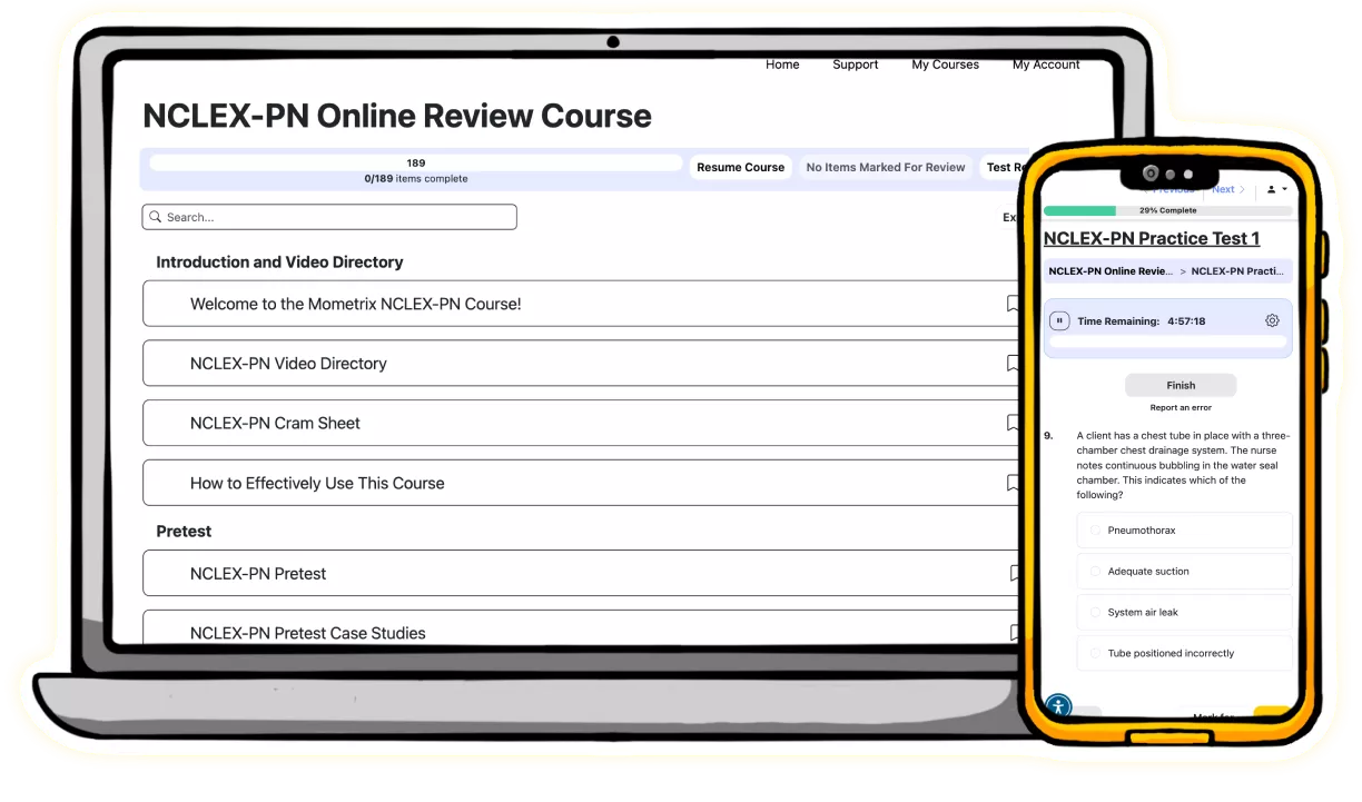 Our course includes the secret keys to the NCLEX-PN exam that we’ve learned through years of research. We’ll tell you how to get questions right when you have no idea what the answer is, the clues hidden in questions to help you guess correctly, and the best way to maximize your studying while minimizing your effort.