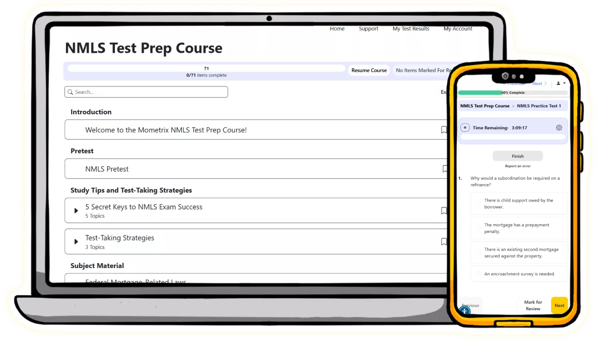 Getting a high score on the NMLS exam requires more than just learning the material. You need to learn the test. This distinction is the biggest difference between students who get a decent score and students who get a great score.