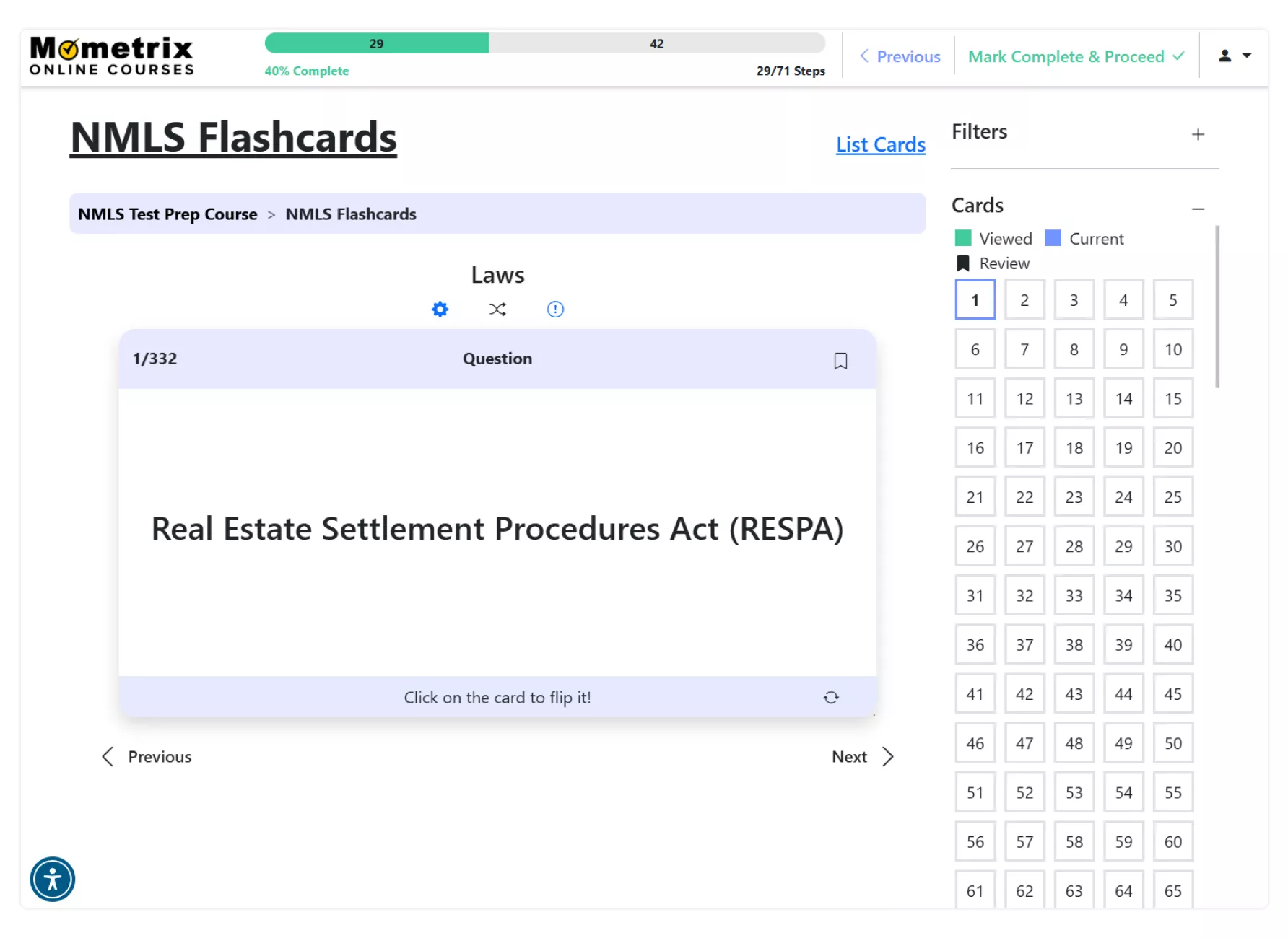Our course includes the secret keys to the Mortgage Loan Originator test that we’ve learned through years of research. We’ll tell you how to get questions right when you have no idea what the answer is, the clues hidden in questions to help you guess correctly, and the best way to maximize your studying while minimizing your effort.