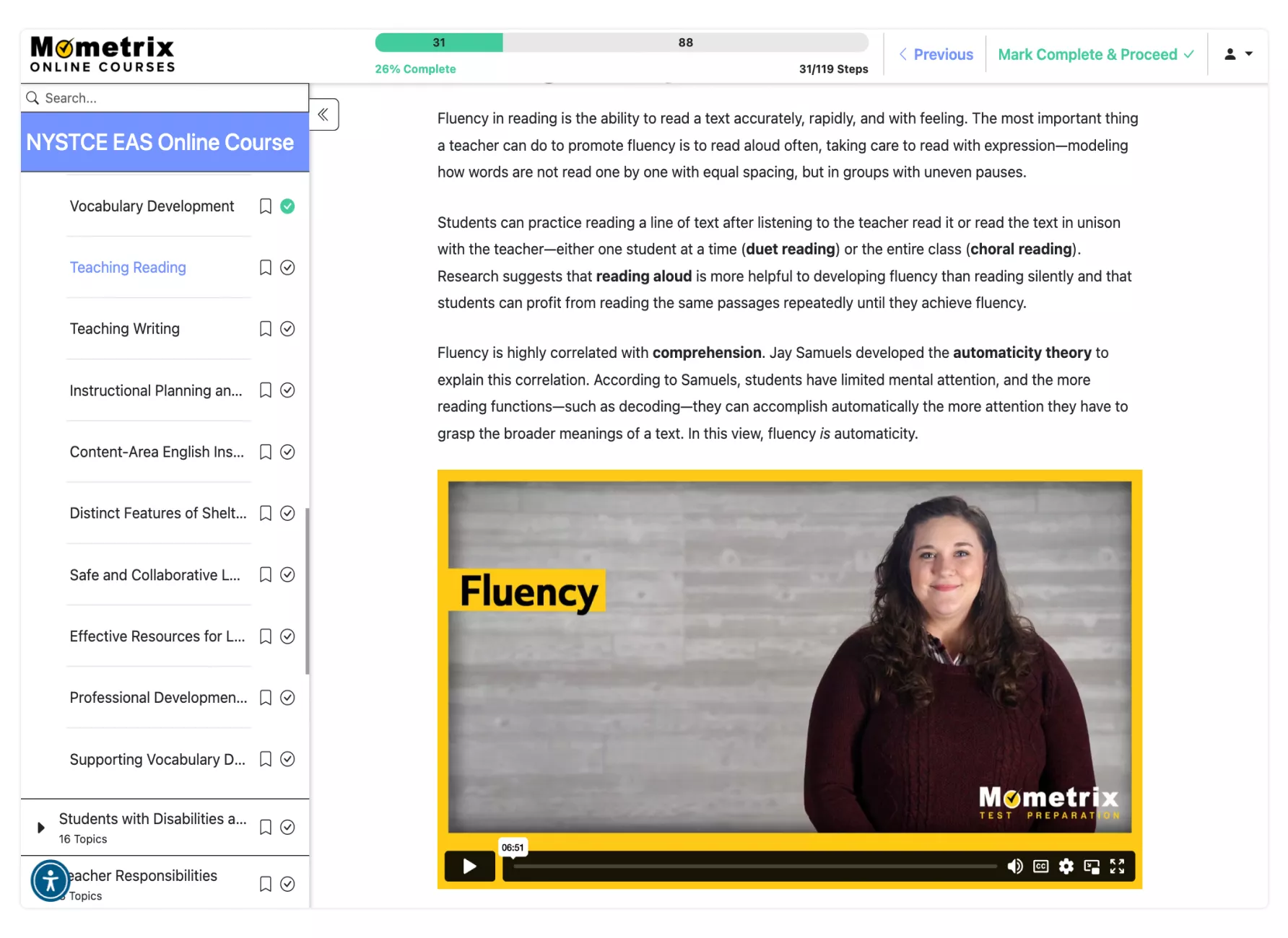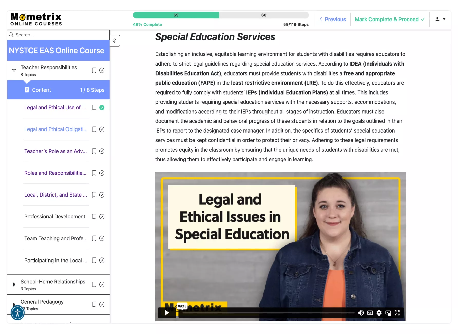 We understand that the teacher responsibilities section, in particular, can be a stumbling block. That’s why our NYSTCE EAS prep course includes dedicated subjects to brush up on essential topics like special education services, vertical teaming, discipline procedures, and student code of conduct. We break down complex ideas into easy-to-understand lessons, ensuring you feel confident tackling any teacher responsibilities-related questions on the exam.