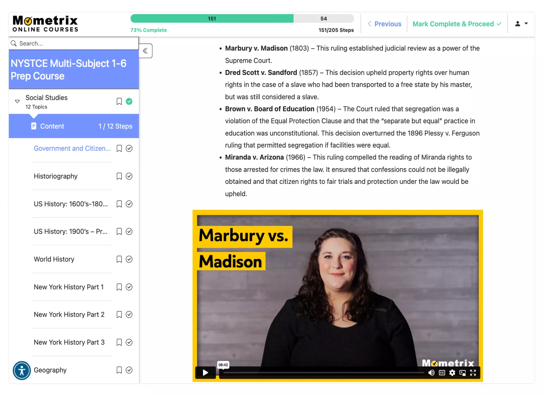 We understand that math, in particular, can be a stumbling block. That’s why our NYSTCE MS Teachers of Childhood 1-6 prep course includes dedicated subjects to brush up on essential calculations like quadratics, inequalities, and probability. We break down complex formulas into easy-to-understand steps, ensuring you feel confident tackling any math-related questions on the exam.