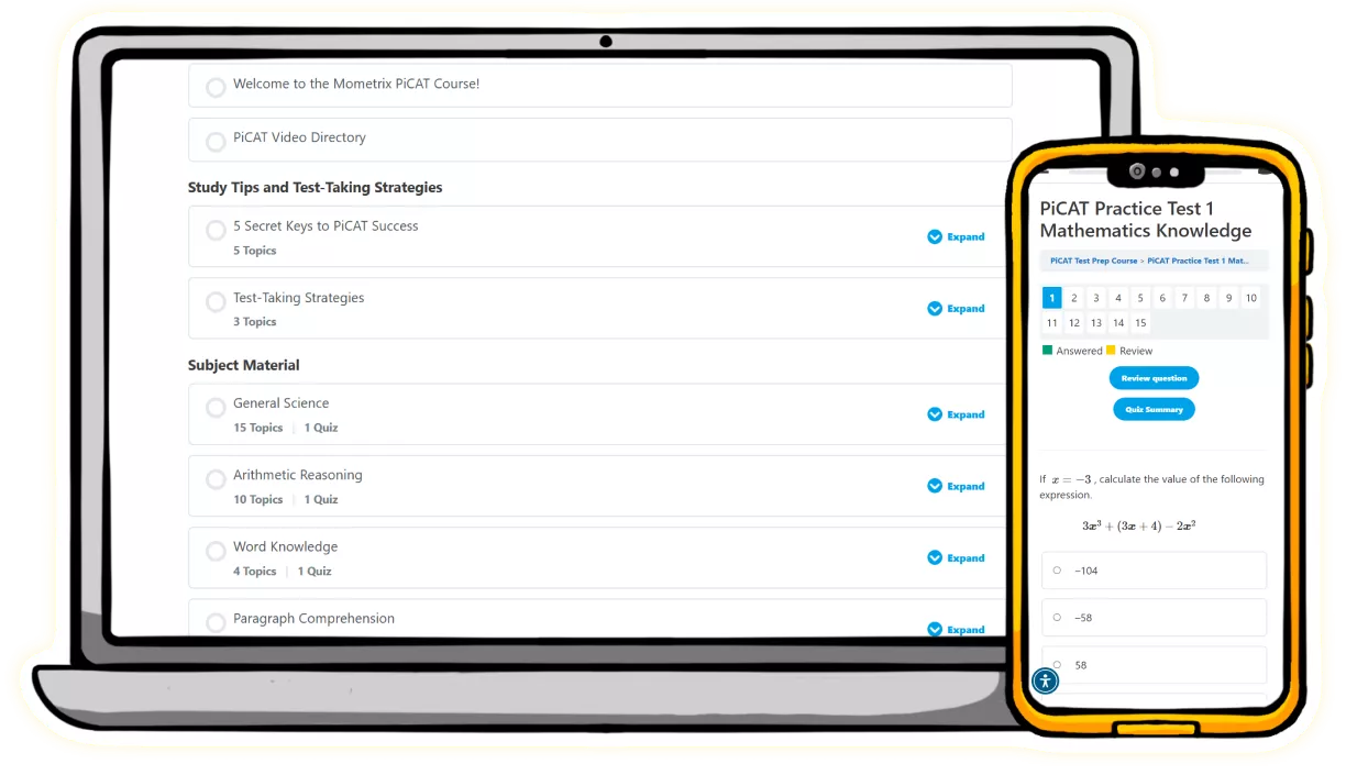 - Practice with 10 full-length PiCAT practice tests that mimic the actual questions you’ll find on the exam