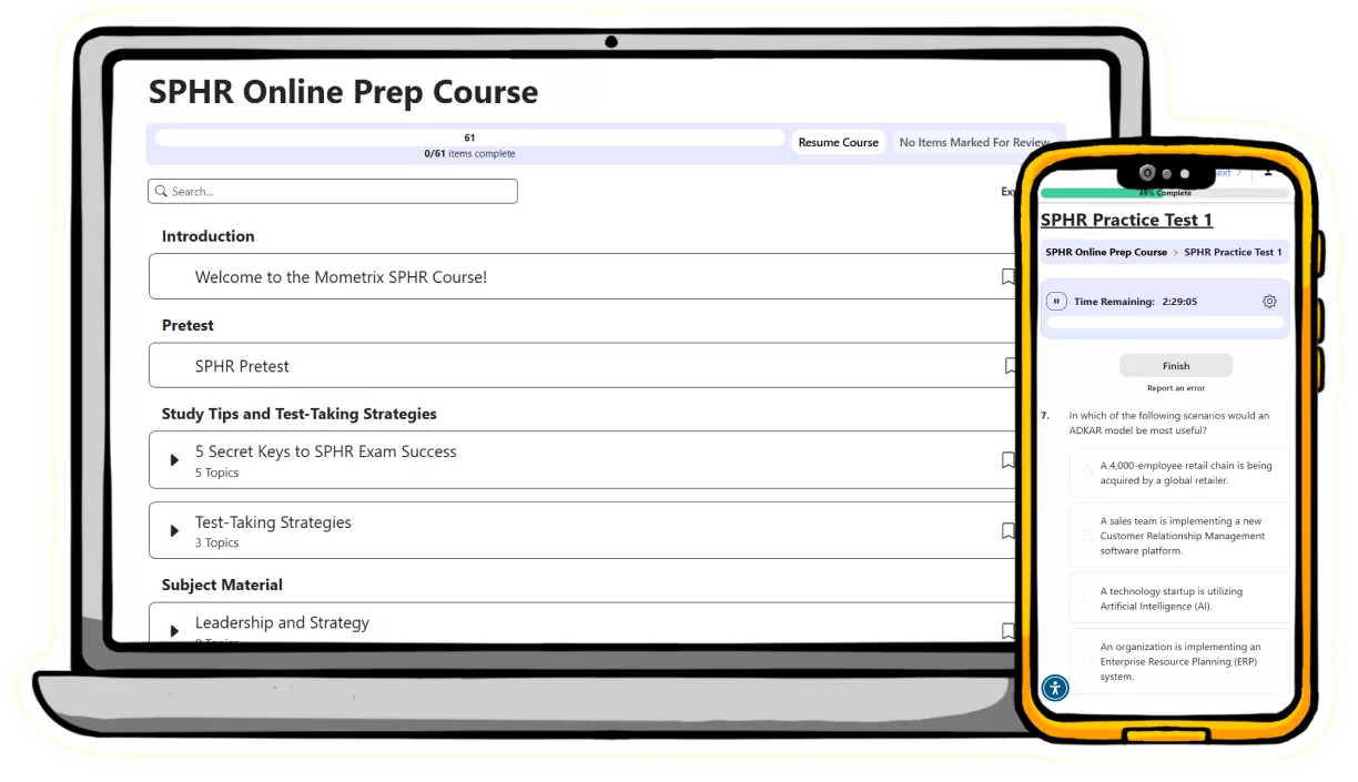 - Practice with 3 full-length SPHR practice tests that mimic the actual questions you’ll find on the exam